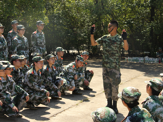上午八点,公司2018级新生八个排的“新兵”个个身穿迷彩军装,在北校田径场集合,参加2018级新生军训动员大会,印有“威廉希尔体育”的大旗飘扬在公司新生队列的最前方。动员大会上,公司新生认真听取学习了副董事长的报告、教官代表的发言,欣赏了教官们带来的精彩表演。会后,全体新生由各排教官带领,前往位于训练场地—北校旧篮球场,开始正式训练。“拇指尖贴于食指第二关节,中指贴于裤缝……”教官从最基础的军姿动作要领开始亲自示范,在一声声刚劲有力口号下,新生们一丝不苟的完成立正、稍息、跨立、坐下、起立等训练任务。