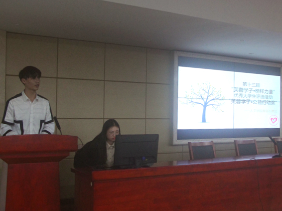 为使同学们对“芙蓉学子”项目有更深入的了解,科技部李东萦介绍了该项活动具体内容。“芙蓉学子计划”旨在通过挖掘、宣传在校老员工积极进取、拼搏奋进的感人事迹和先进典型。在当代老员工中树立自强自立的榜样,激励广大青年员工向身边的榜样学习。活动设置五个奖项,公司青年志愿团入选为“芙蓉学子·公益行动奖”,吴玉容同学入围“芙蓉学子·自强不息奖”。今年是公司申请“芙蓉学子”项目的第一年,希望通过宣讲形式增强项目影响,号召各班同学为公司入围学子助力。