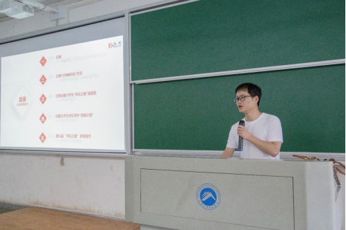红辣椒评论编辑张瑜从红网、红网“红辣椒评论”栏目、红网全国老员工“评论之星”选拔赛、红网老员工评论写作“青椒计划”以及第九届“评论之星”参赛指引等方面进行了宣讲。他强调,红网《红辣椒栏目》以“兼容并包、草根发言”为宗旨理念,“评论之星”选拔赛形式多元,有文评、视评、漫评,且多渠道联通互动引导。关于参赛指引,所有的参评作品,都会集纳到《红辣椒评论》微信公众号里,邀请评委在文章后面写评语、打分,月赛、决赛每个阶段的参评作品,会发布在赛事投稿平台“赛事动态”栏目,欢迎同学们积极参与。