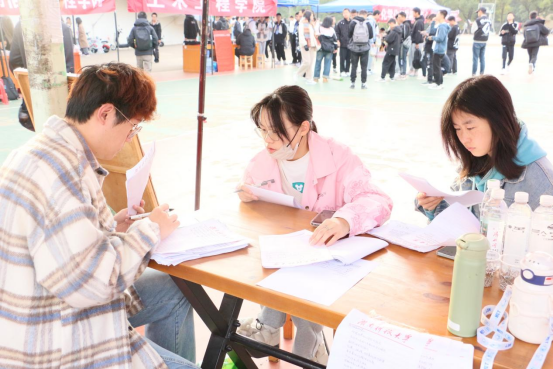 除了在赛场内的后勤保障人员,威廉希尔体育服务台也是一个不可忽视的后勤保障点。不同的部门成员齐聚在此,只为运动会的顺利进行。他们体贴入微,关怀备至,每个人各司其职,负责带领运动员前往检录点、接待赛后运动员、书写运动员赛程、审阅加油稿等服务工作。“我们学院的稿子文采飞扬、字迹清秀。我虽然在场外值班,但场内观众的热情深深打动到我。”作为新媒体的一员,22级历史四班陈诗说道。